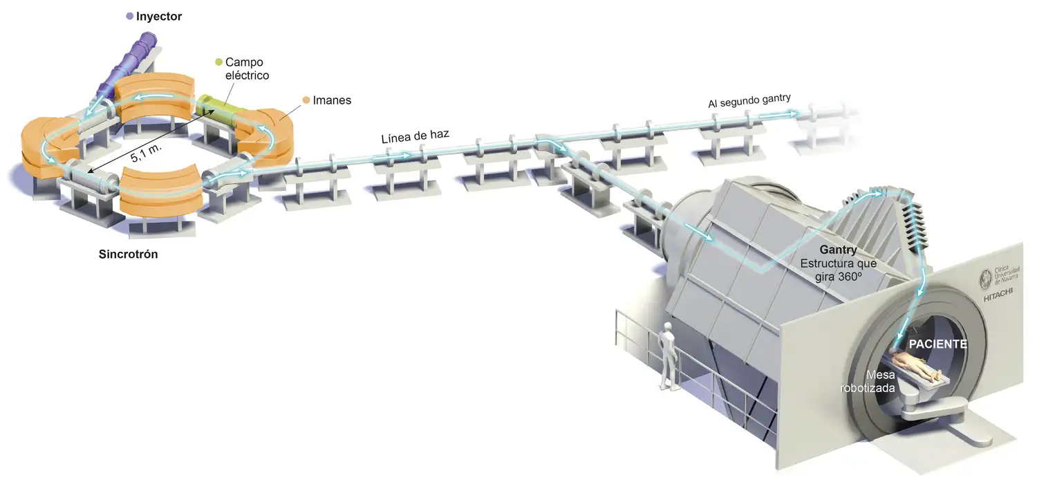 The linear accelerator releases only the protons needed in each beam, thus achieving more efficient energy use, and no secondary neutrons (pollutants) are released.
